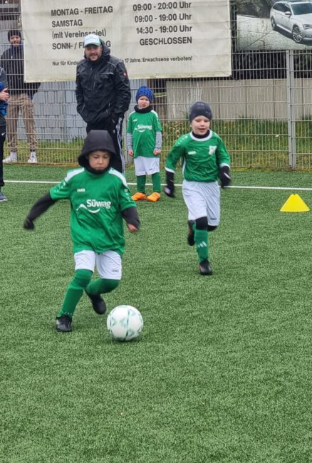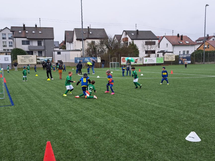 Allerdings zeigte sich das Wetter von seiner ungemütlichen Seite: Der Wettergott hatte an diesem Tag kein Erbarmen, sodass die Spiele von anhaltendem Dauerregen begleitet wurden. Doch davon ließen sich die jüngsten Fußballer nicht aufhalten. Trotz der nassen und kühlen Bedingungen gaben die Juniorkicker auf dem Platz Vollgas.