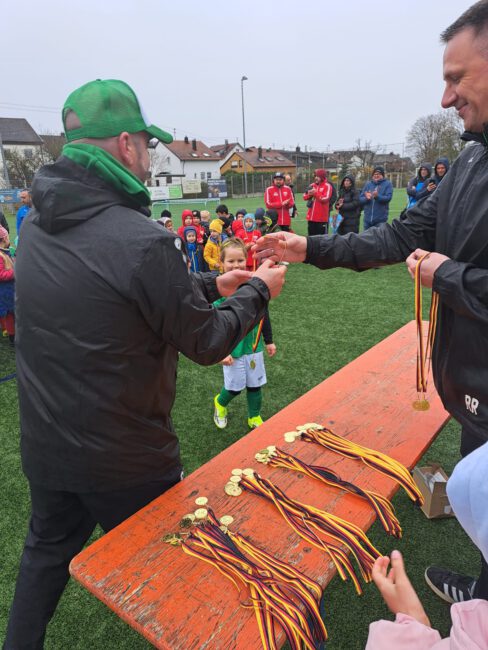 Am Ende des Turniertages stand vor allem der Spaß am Fußball im Vordergrund. Als Belohnung für ihren tollen Einsatz erhielt jedes Kind eine Medaille – ein schöner Abschluss für einen ereignisreichen Fußballtag. Zwar waren Spieler, Trainer und Zuschauer am Ende durchnässt, doch die Freude über die gemeinsamen Spiele und Erlebnisse überwog.