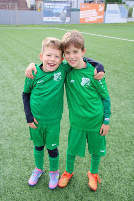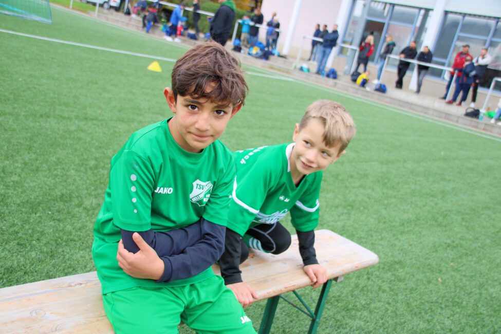 Unterstützt wurden die beiden Teams von den Trainern Thomas und Stefan, die für reibungslose Abläufe sorgten. Rund um den Platz sorgten zahlreiche Eltern für gute Stimmung und leckere Verpflegung. Mit viel Kreativität und Vereinsliebe gab es Muffins in den Vereinsfarben grün-weiß und mit TSV-Schriftzug.