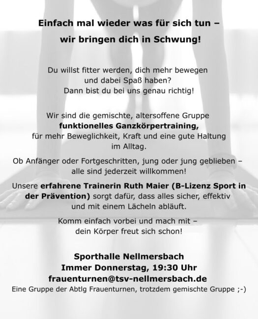 Wir sind die gemischte, altersoffene Gruppe funktionelles Ganzkörpertraining, für mehr Beweglichkeit, Kraft und eine gute Haltung im Alltag.